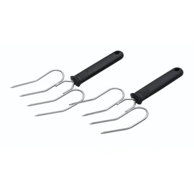 KitchenCraft Poultry Lifting Forks, Turkey and Meat Lifters, Stainless Steel, 22 x 9 cm, Set of 2, Black/Silver