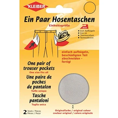 Kleiber Iron On Trouser Pocket Repair, Light Grey, 23 cm x 18,5