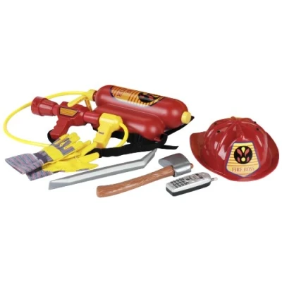 Firemen Set water jet, helmet, axe, crowbar gloves, mobile phone requires 2 x 1,5V, Size AAA, R03 batteries, Manufacturer: Theo Klein