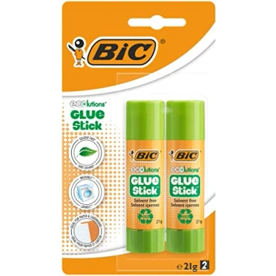 BIC Ecolutions Glue sticks are made from 100% recycled materials They are solvent free so perfect for use by little people. The glue is also washable from skin and most fabrics BIC Ecolutions Glue sticks are suitable for use on paper, cardboard and even photos so are ideal for all arts and craft projects They have an easy and clean application as the glue can be twisted up to provide just as much glue as you need The glue sticks come in four different sizes, 8g, 15g, 21g and 36g