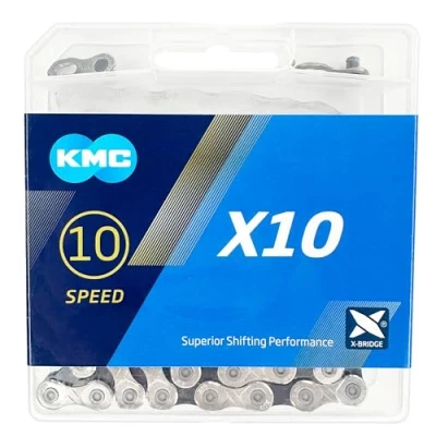 KMC X10 10 Speed Bicycle Chain, Silver/Black, 122 Link