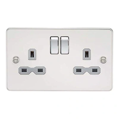 Knightsbridge FPR9000PCG Flat Plate DP Switched Socket, Polished Chrome with Grey Insert, 13 A, 2G