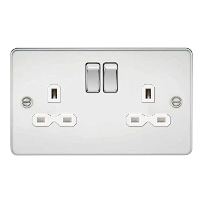 Knightsbridge FPR9000PCW Flat Plate DP Switched Socket, Polished Chrome with White Insert, 13 A, 2G