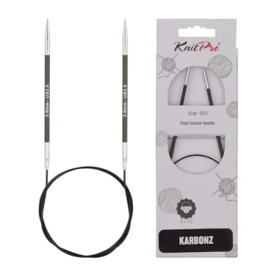 KnitPro 100 cm x 3 mm Karbonz Fixed Circular Needles, Black and Silver