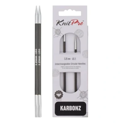 KnitPro 3.25 mm Karbonz Interchangeable Normal Circular Needles, Black and Silver