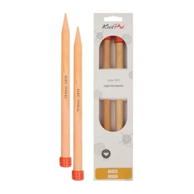 KnitPro 30 cm x 15 mm Basix Single Pointed Needles, Birch