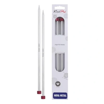 Available Needle Sizes: KnitPro Nova Single Pointed Needles are available in 19 popular sizes, ranging 2mm, 2.25mm, 2.5mm, 2.75mm, 3mm, 3.25mm, 3.5mm, 3.75mm, 4mm, 4.5mm, 5mm, 5.5mm, 6mm, 6.5mm, 7mm, 8mm, 9mm, 10mm and 12mm perfect for knitting flat items like scarves, sweaters, table runners etc. It is an ideal knitting tool for beginners getting familiar with knitting basics. Electropolished Brass Needle: KnitPro Nova Single pointed needles are nickel-free brass needles, electropolished with chrome for better protection and corrosion resistance. Carrying the inherent strength and durability of brass, these needles enable a smooth experience every time. Pad-Printed Needle Sizes: Each pair of knitting needle has pad-printed sizes in black ink that remain legible and do not wear off with regular use. These precise and smudge-free markings are not impacted by friction of the yarn or the hands of the knitter while they knit. Smooth & Lustrous Finish: KnitPro Nova Single Pointed Needles bear a smooth finish and texture, and are suitable for hours of pleasurable knitting. The yarn glides effortlessly through the needles without any snags or pulls. It helps create extremely beautiful projects that are a delight to knit and wear. Plastic Free FSC- certified paper packaging: KnitPro Nova Single Pointed Needles are packaged in environment-friendly recycled paper that is certified by the Forest Stewardship Council (FSC). The paper used for the packaging is sourced responsibly, ensuring the preservation of our environment., Manufacturer: KnitPro