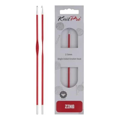 Thickness: 2.50 mm These KnitPro Zing crochet hooks are made of lightweight metal The needles sit comfortably in the hand thanks to the cut-out in the shaft and the smooth surface