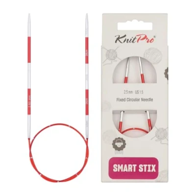 Fixed Circular Needles: Made from fine quality aluminum, KnitPro Smartstix Fixed Circular needles are lightweight and built to last through longer knitting sessions. The perfectly crafted metal tips and kink-free cable move effortlessly through the yarn creating beautiful knitted pieces. Available Needle Sizes: KnitPro Smartstix Fixed Circular needles are color coded and available in 16 popular sizes, ranging from 2mm to 8mm, perfect for knitting cowls, headbands, scarves, etc. 2-in-1 Knitting Tool: Smartstix is a perfect tool for smart knitters, who prefer precise knitting with accurate measurements. Each Smartstix needle and cable is marked with a 2cm gap that lets you measure the gauge as you knit. This unique built in measurement design enables faster and efficient knitting. Laser-Printed Sizes: Each pair of vibrant Smartstix knitting needles and cables have laser-printed markings that make them a preferred choice among knitters. These precise markings do not rub off due to friction of the yarn or the hands of the knitter. Sustainable Paper Packaging: Packaged in FSC-certified recycled paper, these needles prioritize sustainability with responsibly sourced, plastic-free materials to help protect the environment.