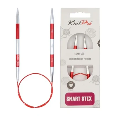 Fixed Circular Needles: Made from fine quality aluminum, KnitPro Smartstix Fixed Circular needles are lightweight and built to last through longer knitting sessions. The perfectly crafted metal tips and kink-free cable move effortlessly through the yarn creating beautiful knitted pieces. Available Needle Sizes: KnitPro Smartstix Fixed Circular needles are color coded and available in 16 popular sizes, ranging from 2mm to 8mm, perfect for knitting cowls, headbands, scarves, etc. 2-in-1 Knitting Tool: Smartstix is a perfect tool for smart knitters, who prefer precise knitting with accurate measurements. Each Smartstix needle and cable is marked with a 2cm gap that lets you measure the gauge as you knit. This unique built in measurement design enables faster and efficient knitting. Laser-Printed Sizes: Each pair of vibrant Smartstix knitting needles and cables have laser-printed markings that make them a preferred choice among knitters. These precise markings do not rub off due to friction of the yarn or the hands of the knitter. Sustainable Paper Packaging: Packaged in FSC-certified recycled paper, these needles prioritize sustainability with responsibly sourced, plastic-free materials to help protect the environment.