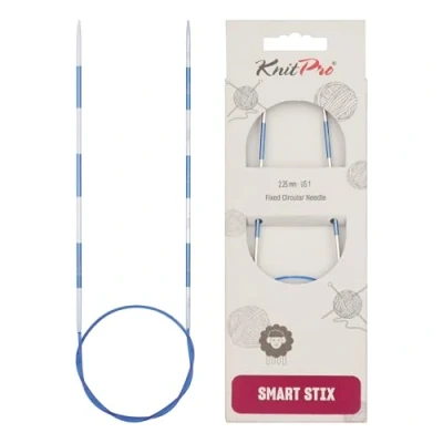 Fixed Circular Needles: Made from fine quality aluminum, KnitPro Smartstix Fixed Circular needles are lightweight and built to last through longer knitting sessions. The perfectly crafted metal tips and kink-free cable move effortlessly through the yarn creating beautiful knitted pieces. Available Needle Sizes: KnitPro Smartstix Fixed Circular needles are color coded and available in 19 popular sizes, ranging from 2mm to 12mm, perfect for knitting cowls, headbands, scarves, etc. 2-in-1 Knitting Tool: Smartstix is a perfect tool for smart knitters, who prefer precise knitting with accurate measurements. Each Smartstix needle and cable is marked with a 2cm gap that lets you measure the gauge as you knit. This unique built in measurement design enables faster and efficient knitting. Laser-Printed Sizes: Each pair of vibrant Smartstix knitting needles and cables have laser-printed markings that make them a preferred choice among knitters. These precise markings do not rub off due to friction of the yarn or the hands of the knitter. Sustainable Paper Packaging: Packaged in FSC-certified recycled paper, these needles prioritize sustainability with responsibly sourced, plastic-free materials to help protect the environment.