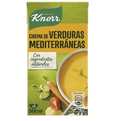 Knorr Mediterranean Vegetables Cream 500ml 100% Natural Cream Delicious vegetable cream made without preservatives, no dyes, glutamate free and suitable for vegetarians Cream made with fresh vegetables from sustainable agriculture With a plate of this cream you will have 1 of the recommended 5 daily servings of fruit and vegetables*