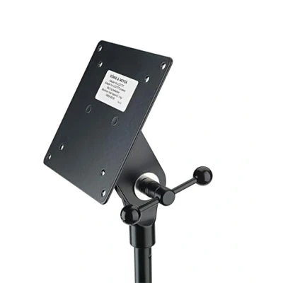 For attaching a small lcd and led screen to a stand Made of steel Attachment plate can easily be mounted on the stand with the prismatic connection Swivel joint with a 3/8-inch thread Available in black colour