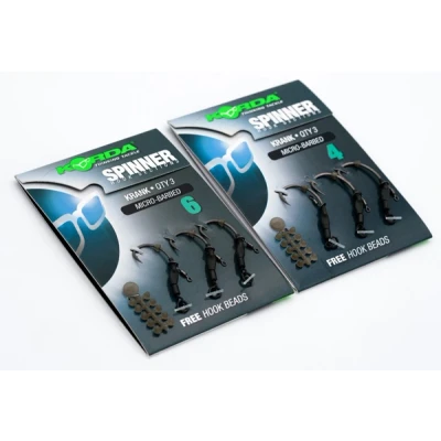 Korda Spinner Hook Sections Krank - Multiple options - Krank Shank - 3 pieces per package - Micro barbed - Quickly and easily create a Spinner or Ronnie rig - Razor-sharp hooks - Incl. free hook beads - Choose size 4 for popups from 16mm or size 6 for popups from 14mm and smaller - Ready to use - Indispensable for every carp angler! Making a Spinner or Ronnie Rig has never been easier! With these ready to use Spinner Hook Sections from Korda you can make your favorite rig fast and professionally. One package contains 3 razor-sharp Krank Shank hooks, which are equipped with a micro barb. Choose size 4 for popups from 16mm or size 6 for popups from 14mm and smaller. Indispensable for every carp angler!