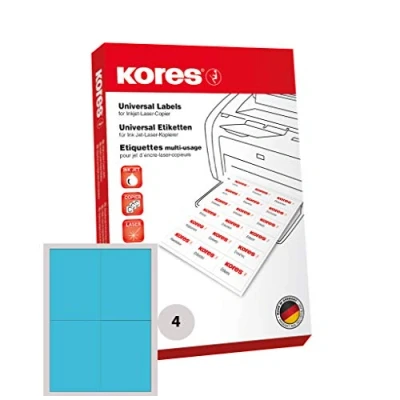 Kores Coloured Universal Labels 105 x 148.5 mm 100 Sheets Blue