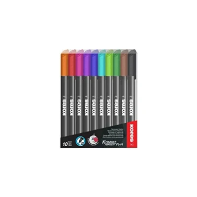 Kores K Marker P1: Coloured Permanent Pens, Fine Fibre Tip with Waterproof and Low Odour Ink, for All Surfaces, Pack of 10 Assorted Colours