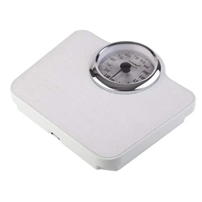 Classic – just like the doctor, the Bodo mechanical personal scales saves battery purchase and still reliably helps with weight determination Timeless - Classic in shape and design; a neutral classic and therefore the Bodo fits in any bathroom, with white non-slip mat Full view scale – the large round scale is easy to read and designed for a load capacity of 150 kg and displays reliably in 1000 g increments Values – larger than many others with a dimension of the weighing surface of 35 x 30 cm, very stable and easy to read