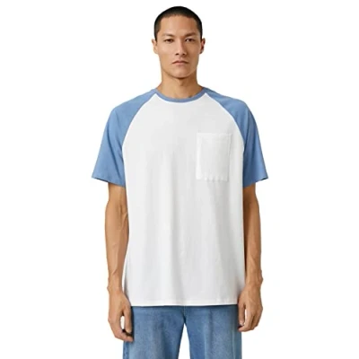 Koton Men's Basic T shirt Crew Neck Raglan Sleeve, Mid Indigo (740), M