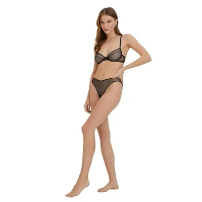 Koton Sheer Glitter Thong Panties, black, S