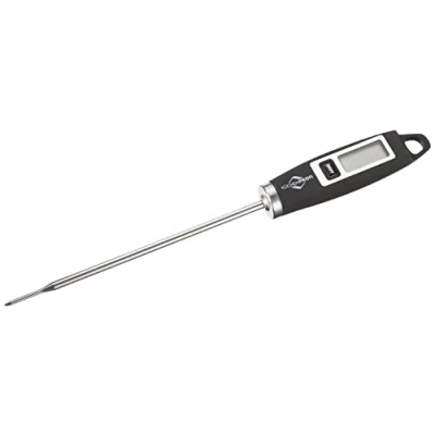 Digital thermometer with easy to read LCD display and large numbers The thermometer is equipped with a voice function in German and English and an illuminated LCD display Universal thermometer for cooking, baking, measuring core temperature or can also be used as a wine thermometer. Length: 19.9 cm, measuring range -50 °C to +200 °C With the products from the BBQ series, your next barbecue party will be a sure success