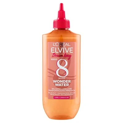 The water of wonders: Liquid conditioner with instant action lamellar technology for silky soft and shiny hair Transformed hair in just 8 seconds: 10 times smoother, softer and instantly detangled without weighing down, hair repaired to the ends Apply 2-3 times a week to wet hair (lengths only) after shampooing, massage for 8 magical seconds and then rinse, Use conditioner if needed and blow dry for even better results Instant smoothing treatment with ultra fine lamellae that envelops the hair fibre releasing healing agents, Water-like formula with nutrients, proteins and amino acids, Silicone-free Contents: 1 x Elvive L'Oreal Paris Wonder Water Liquid Balm, Lamellar Technology, 200 ml