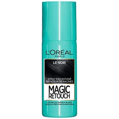 Instant spray to temporarily camouflage grey hair, works in just 3 seconds, ideal for colouring hair regrowth Results: Temporary root coverage until the next shampoo, homogeneous result without demarcation Application: Shake the bottle before use, spray 15 cm from the roots on dry hair, brush the hair and leave to dry for 1 minute, mixed product, as effective on women as on men Dries in just a few minutes, water resistant, available in multiple shades to match your hair Contents: 1 x L'Oréal Paris Magic Retouch Instant Spray, White Hair Corrector, Colour: Black, 75 ml