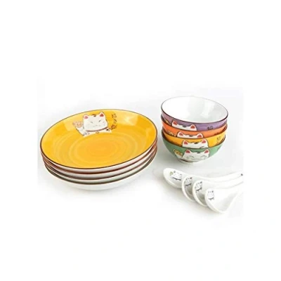 Material of the Maneki Neko lunch box: porcelain Dimensions of the Maneki Neko lunch box: plate 20 cm diameter - bowls height 5.5 cm, diameter 11.5 cm - spoon 14 cm length Colour of the Maneki Neko lunch box: purple, orange, yellow and green Japanese culture and tradition Breakfast service for 4 people, with Japanese tradition, the famous Maneki-Neko, the cat that attracts happiness and happiness, Weight: 2.646 pounds, Manufacturer: Lachineuse