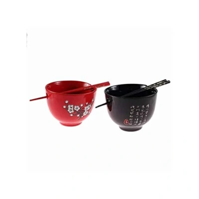 Red and black bowl duo material: porcelain and bamboo Red and black bowl duo dimensions: 10cm high, 13cm diameter top. 22 cm long drumsticks Red and black bowl duo colour: dominant red and black Asian decoration and tradition. Beautiful duo of large Asian bowls accompanied by 2 pairs of chopsticks, red and black shades, and featuring a beautiful cherry blossom design, Weight: 1.763698096 Pounds, Manufacturer: Lachineuse
