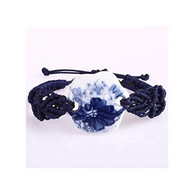 Floral Design Bracelet Material: Porcelain and Cotton Flower Design Bracelet Size: Adjustable Bracelet by Sliding Knot , Plate Diameter 3.5cm. Floral Pattern Bracelet Colors: Major Blue Asian jewellery - originality and refinement Beautiful bracelet, mounted on an adjustable cord, and composed of a porcelain plate, decorated with a floral pattern. A real gift idea for loved ones who love original jewellery.