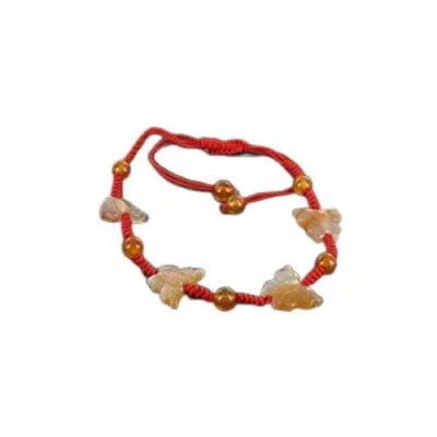 Bracelet material: agate with butterflies. Agate Butterfly Bracelet Size: Approx. 1.5 cm wide. Colour of the bracelet with butterfly agate: shade from translucent to orange. Asian bracelet, traditional lucky charm Beautiful agate bracelet consisting of finely chiselled butterflies and on adjustable cotton thread. This agate bracelet is a classic in jewellery. The simple and harmonious agate butterflies inspire beauty and softness.