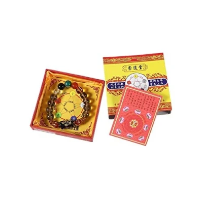 Taoist Bracelet Material: Resin Taoist bracelet size: 11mm diameter main beads, engraved charm 1.8 cm in length. Taoist bracelet colors: multi-coloured Taoist Bracelet - Asian Traditions Original Taoist traditional bracelet, made of resin beads, to promote harmony and balance in everyday life. This bracelet is the men's model which is made up of beads larger than the woman's model. An original bracelet, suitable for everyday wear, and can be a real symbolic gift idea for loved ones.