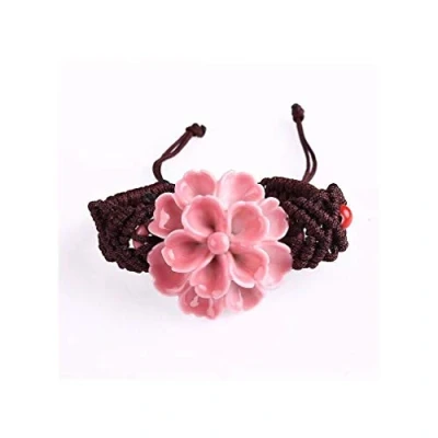 Rose Flower Bracelet Material: Porcelain and Cotton Rose Flower Bracelet Size: Adjustable Bracelet by Sliding Knot, Flower Diameter 3.5cm. Rose Flower Bracelet Color: dominant pink Asian jewellery - originality and refinement Beautiful adjustable bracelet, made of a pink flower made of porcelain. A real gift idea for loved ones who love original jewellery.