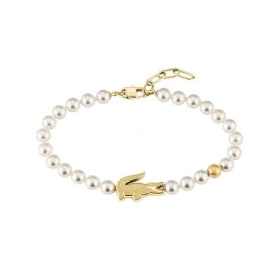 MATCHPOINT BRACELET - For him and her timeless beads combined with yellow gold IP accents, including an engraved tennis ball and crocodile, in an elegant Lacoste design. High-quality materials. Bright faux pearls and gold ion-plated details embody versatile elegance in the iconic Lacoste style. Bracelet size: 160 mm (with an extension of 5 mm), includes extension chain and charms in the shape of a tennis ball (6 mm) and a crocodile (20 x 12.5 mm), for a comfortable and flexible fit Complete your look with the matching necklace and earring set from the Matchpoint collection, for a stylish and harmonious overall look Lobster clasp, easy to use and secure to keep the bracelet in place all day long