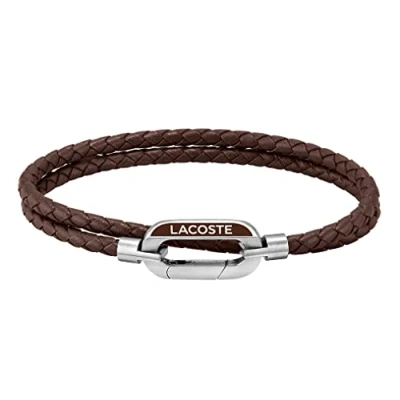 Double-wrap leather bracelet for men by Lacoste Material: Brown leather with stainless steel closure Inner circumference: 19 cm Embellished with Etched Lacoste logo on the closure Closure: Hook