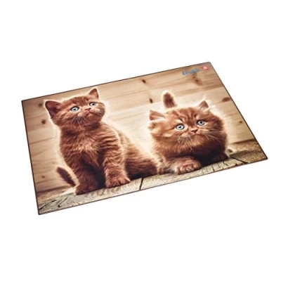 Desk Pad made of imitation fabric for outstanding writing comfort, size: 40 x 53 cm Curious kittens design, with transparent strip on the left side for use of notes This runner 3-layer construction allows for writing comfort and non-slip layer on the table. Dadurch create faster leicher, soft & Lieber Stable, wipe clean and durable made in Germany Fit Ergänzung: Runner 26664 Dustbin with same theme