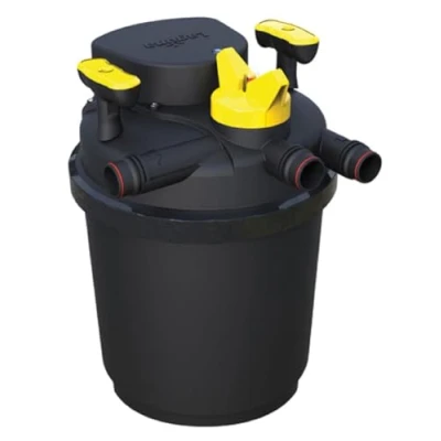 An easy to view cleaning indicator signals when it's time to perform backwash cleaning Pressure Flo 13500 is for use with ponds up to 13500 Comes complete with 24W UVC Lamp and 4 filter foams and a bio brick Compatible with Max Flo 7600 3 Years Manufacturer Warranty