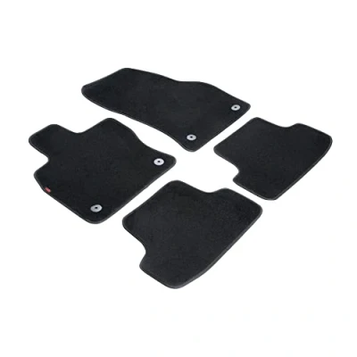 Car mats CE certified according to EN 14041:2004, 100% polypropylene, fleece finish. Non-slip, water resistant gel foam backing, with fixings for the original fixing points when the vehicle is prepared.