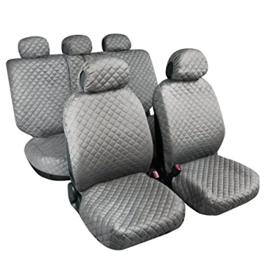 3 + 3 2 front, 2 back pockets (with zips), 5 copripoggiatesta; Sponge Padding in Polyester fabric Universal compatible for most standard seats; Seats Fitted with side airbags Non-fading colours; Soft padding; Headrest Cover Included Backrest and seat rear 50/50 divisible, 60/40, 40/60 (3 + 3 Hinges); Removable for greater adaptability to the central part seats close