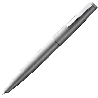 Lamy 2000 silver elegant fountain pen in a velvety matt polished stainless steel barrel 14 ct. gold nib, partially platinum plated nib size OB
