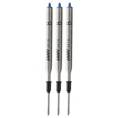 With this practical ballpoint pen refill made of metal, you get a particularly soft ink flow and thus a refined typeface Lamy Ballpoint pen refills M 16 are indelible in all colours and lead thicknesses: they impress with their high writing quality and tamper-proof writing The Lamy large capacity refills for ballpoint pens made in Heidelberg are available in four colours (black, blue, red, green) and in three font widths (F,M,B) Sustainable and climate-friendly: instead of buying a new pen, all cartridges and refills in Lamy writing instruments can be replaced at any time - good for the environment Box contents: 3x Lamy M 16 ballpoint pen refill in blue with line width F – indelible