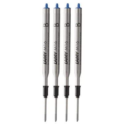 SMOOTH INK FLOW FOR AN EXCLUSIVE WRITING EXPERIENCE: The LAMY M 16 metal ballpoint refill ensures smooth, consistent writing and a precise, refined finish – perfect for everyday use. WIDE RANGE OF COLORS FOR CREATIVE WRITING: Available in blue, black, red, and green – ideal for personalizing notes, letters, or sketches. FOR ALL LAMY BALLPOINT PENS: All Lamy ballpoint pens write with the Lamy LAMY M16 large-capacity refill, which can be replaced quickly and easily. SUSTAINABLE & CLIMATE-FRIENDLY: Instead of buying new pens, simply replace the cartridges or refills. The durable LAMY writing instruments are environmentally friendly and designed for long-term use. SCOPE OF DELIVERY: 4x LAMY M 16 large-capacity ballpoint pen refills in blue, line width B (broad) – for long-lasting, excellent writing with maximum precision and reliable ink quality.