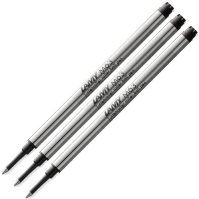With this practical rollerball pen refill made of metal, you get a particularly soft ink flow and thus a refined typeface The Lamy refills for rollerball pens made in Heidelberg are available in different colours (black, blue erasable, red, green) and in two font widths (M,B) A tungsten carbide ball serves as a writing tip, it delivers a rich line even when writing fast and is therefore ideal for left-handed users Sustainable and climate-friendly: instead of buying a new pen, all cartridges and refills in Lamy writing instruments can be replaced at any time - good for the environment Box contents: 3x Lamy M 63 rollerball pen refill in black with line width M
