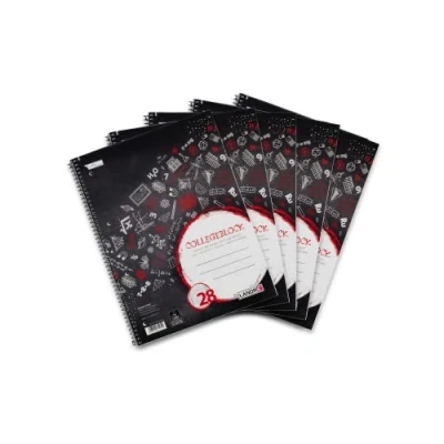 With 80 sheets (160 pages), the notepad offers 70 g/m² fine, white, wood-free writing paper The 4-hole punched pad has the line style 28, means squared with a margin line inside and outside Trendy design in blackboard look and space for the name thanks to a labelling field The arithmetic and writing pad has a hard cover and a reinforced cardboard spine and is certified with the EU Ecolabel Pack of 5 college pads squared, ruling style 28