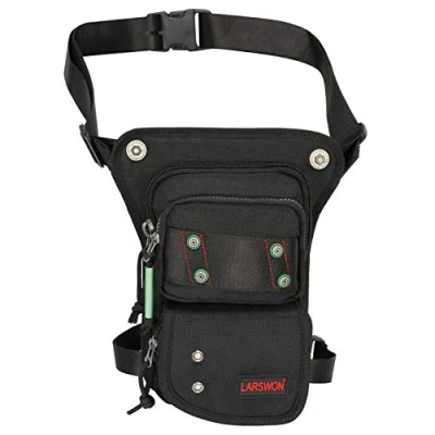Larswon Drop Leg Bag Thigh Pack Pouch Panel Motorcycle Bag, Black,green, M