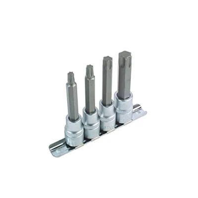1/2" D Socket Bits: T40, T45, T55, T70 Total length: 100 mm Sockets made of satin chrome vanadium, bits made of impact-resistant S2 steel (including T70 made of CV) . Supplied on a plug-in rail