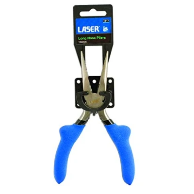 Long nose for better access. 6" (150mm) long Serrated jaws. Spring loaded. Ergonomic soft grip handles