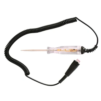 Super clear handle give 360º visibility, with 3 metre long spring coiled lead. Automatic voltage selection, voltage level being tested indicated by coloured LED's. Low current circuit safe - maximum draw 3 milliamps @ 12V. Ideal for quick and safe voltage checks on systems up to 48 volts. 48 volt MHEV (mild hybrid electric vehicle) safe. CE, UKCA & RoHS compliant.