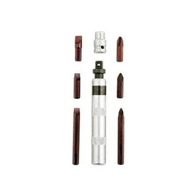 Impact power and quality Can be used with sockets with diameters of 3/8 inch 6 bits with lengths of 36 mm: Phillips Ph2/Ph3, flat 8 mm / 10 mm, bits with a length of 2 x 80 mm: Phillips Ph2, flat 8 mm adapter 1 x 3/8 inch (diameter) x 5/16 inch Small enough to be carried in the on-board tool For removing rusty screws, nuts and bolts as well as other hard to reach areas