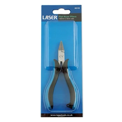 Flat nose pliers 3 mm jaws 130 mm length Made of chrome vanadium steel for increased strength Spring loaded soft grip handles for repeated use Polished and tempered head Part of the Laser Electronics pliers range