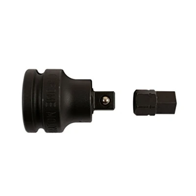 Insert adapter: 3/4 inch drive (male) > 1/2 inch drive (female) Made of chrome molybdenum steel Interchangeable 1/2" drive (male) x 1/2" hex included (consumables) Black finish Interchangeable parts: